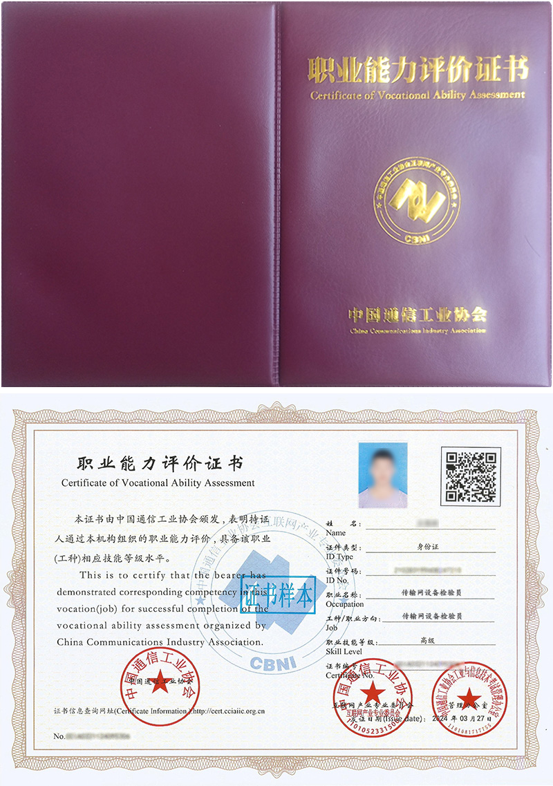 传输网设备检验员证书是相关从业人员可以重点学习和考取的证书,该证书表明持有者已经通过相关课程的培训和考核,具备相关的专业知识和职业技能,是岗前培训、在职培训、职业技能提升培训、创业培训的证明,是劳动者任职、上岗的参考依据之一。 证书编号为唯一编码,证书有效性可通过发证单位指定的官网查询。