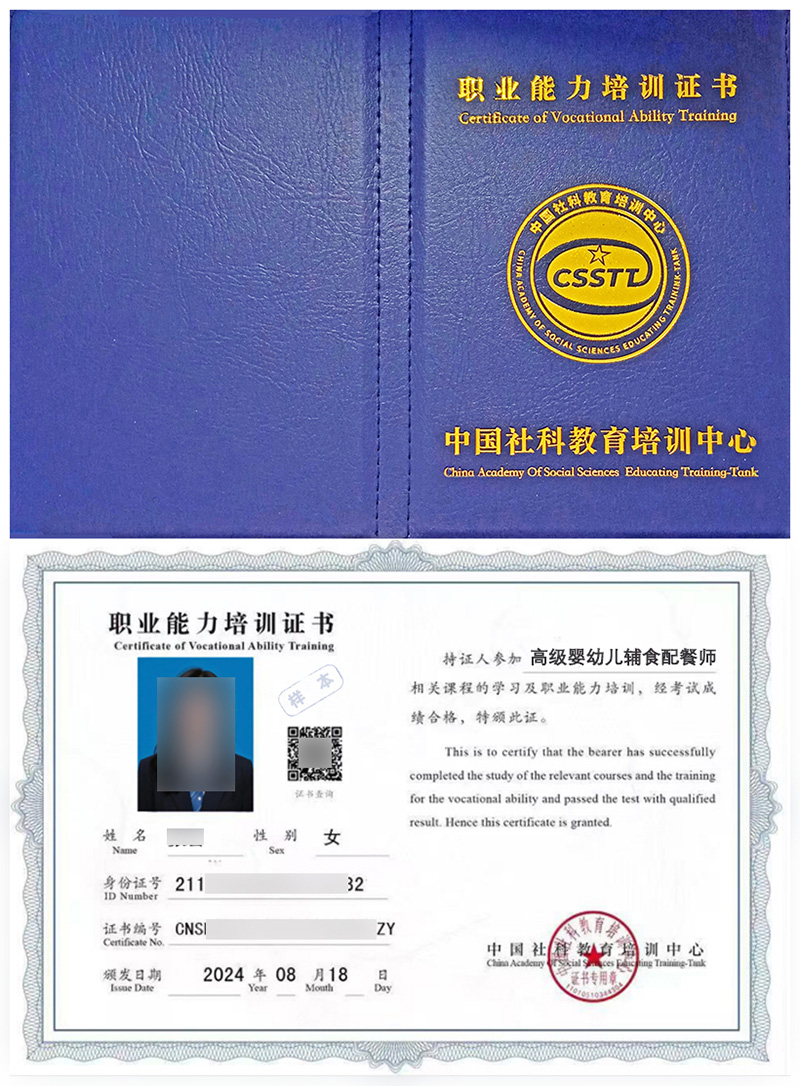婴幼儿辅食配餐师证书是相关从业人员可以重点学习和考取的证书,该证书表明持有者已经通过相关课程的培训和考核,具备相关的专业知识和职业技能,是岗前培训、在职培训、职业技能提升培训、创业培训的证明,是劳动者任职、上岗的参考依据之一。 证书编号为唯一编码,证书有效性可通过发证单位指定的官网查询。