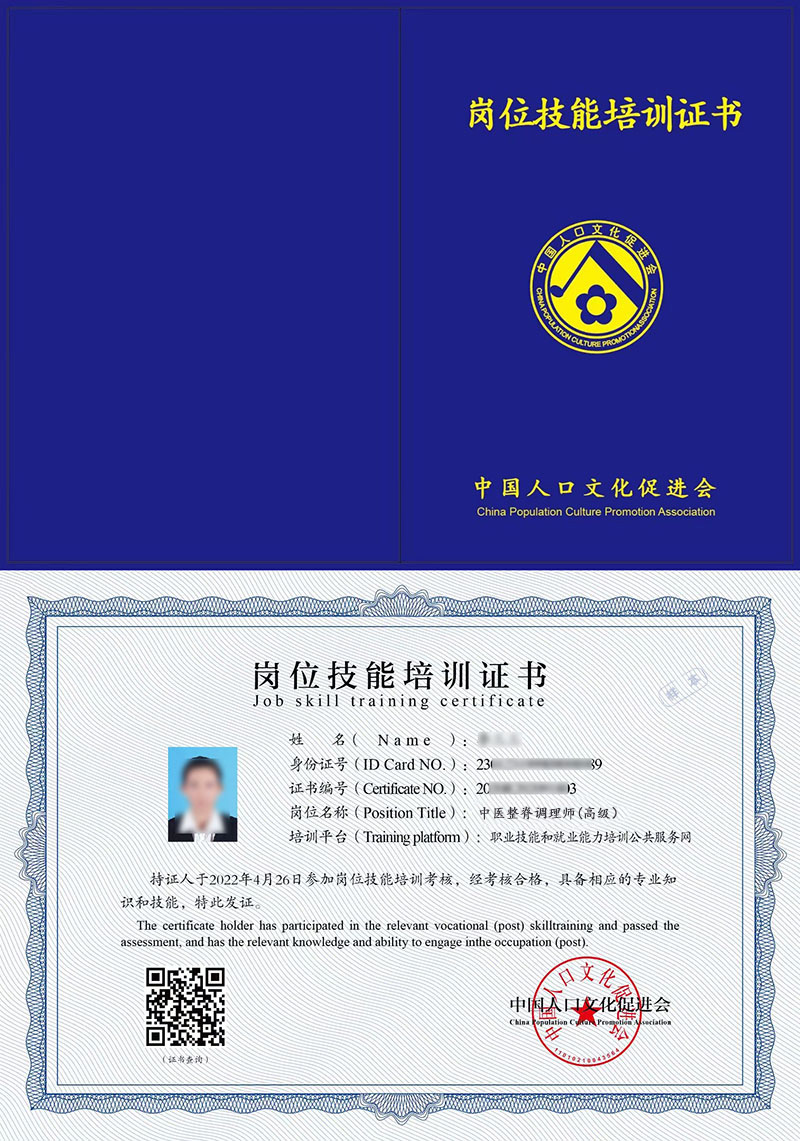 中医整脊调理师证书是相关从业人员可以重点学习和考取的证书,该证书表明持有者已经通过相关课程的培训和考核,具备相关的专业知识和职业技能,是岗前培训、在职培训、职业技能提升培训、创业培训的证明,是劳动者任职、上岗的参考依据之一。 证书编号为唯一编码,证书有效性可通过发证单位指定的官网查询。