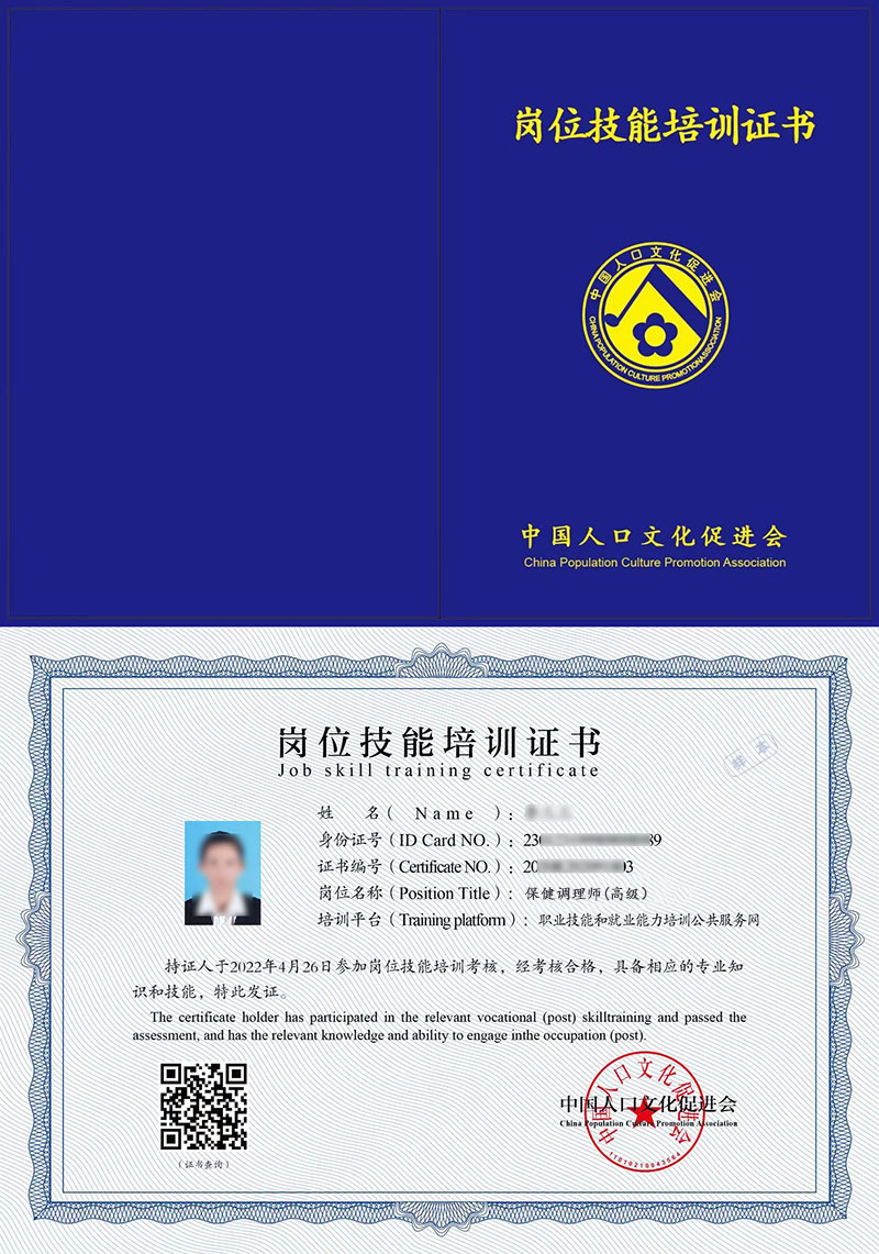保健调理师证书是相关从业人员可以重点学习和考取的证书,该证书表明持有者已经通过相关课程的培训和考核,具备相关的专业知识和职业技能,是岗前培训、在职培训、职业技能提升培训、创业培训的证明,是劳动者任职、上岗的参考依据之一。 证书编号为唯一编码,证书有效性可通过发证单位指定的官网查询。