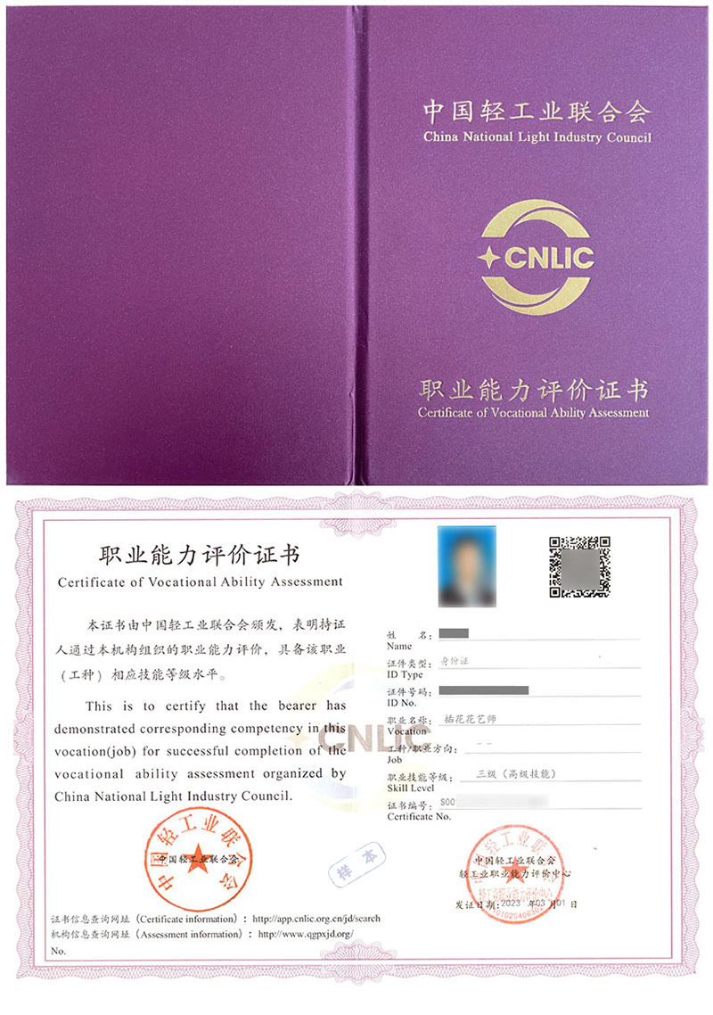 插花花艺师证书是相关从业人员可以重点学习和考取的证书,该证书表明持有者已经通过相关课程的培训和考核,具备相关的专业知识和职业技能,是岗前培训、在职培训、职业技能提升培训、创业培训的证明,是劳动者任职、上岗的参考依据之一。 证书编号为唯一编码,证书有效性可通过发证单位指定的官网查询。